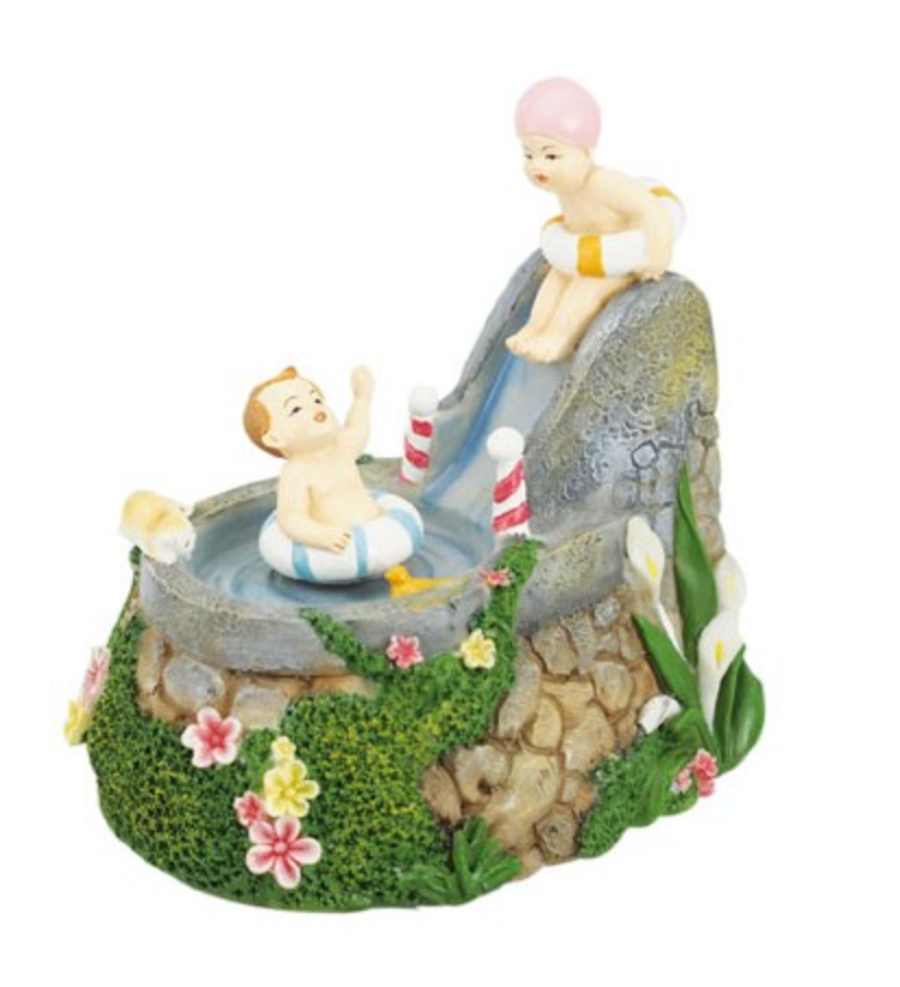 Questo carillon Acquascivolo in resina rappresenta un delicato momento di gioco, con un bimbo che si diverte a girare nella piscina con la sua ciambella, accompagnato da una melodia riconoscibile e rilassante. Le dimensioni compatte (14x12x15,5 cm) lo rendono ideale per essere posizionato su mensole o tavoli come elemento decorativo musicale, perfetto per creare un’atmosfera serena e gioiosa in qualsiasi ambiente.