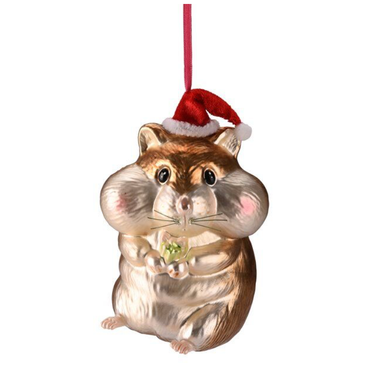 Questa decorazione per albero di Natale a forma di criceto con cappello di Natale in vetro è l'aggiunta perfetta per il tuo albero di Natale. Con le sue dimensioni di 8,2x12,6x7,5 cm, aggiungerà un tocco di festività alla tua casa. Realizzata in vetro.