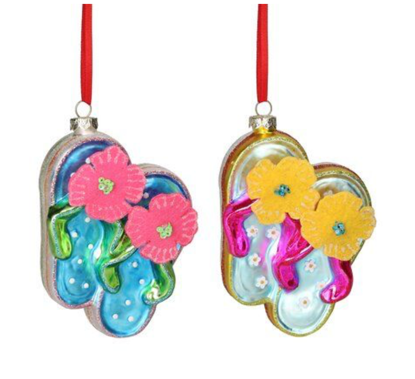 Aggiungi un tocco di festa alla tua casa con la decorazione in vetro a forma di infradito per albero di Natale. Con le sue dimensioni di 8x4x11,6cm, questa decorazione sarà l'ideale per abbellire il tuo albero.