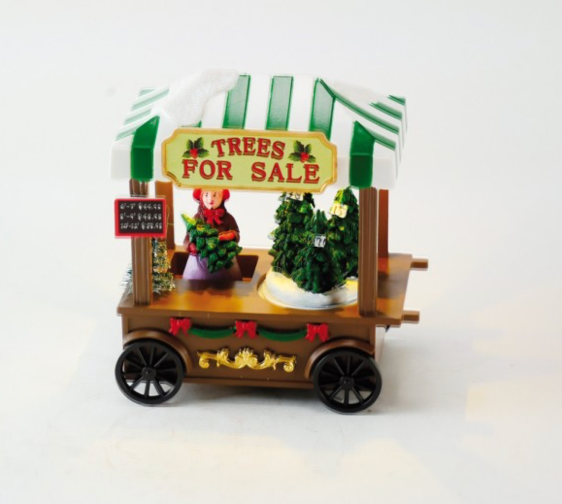 Scenetta decorativa kiosco natalizio illuminato, suona un medley di 8 diverse melodie natalizie. Interruttore a 3 vie: spento, acceso senza musica, acceso con musica. Non adatto per il funzionamento continuo. Funzionamento a batteria. Dimensioni: 130 x 75 x 130 mm.